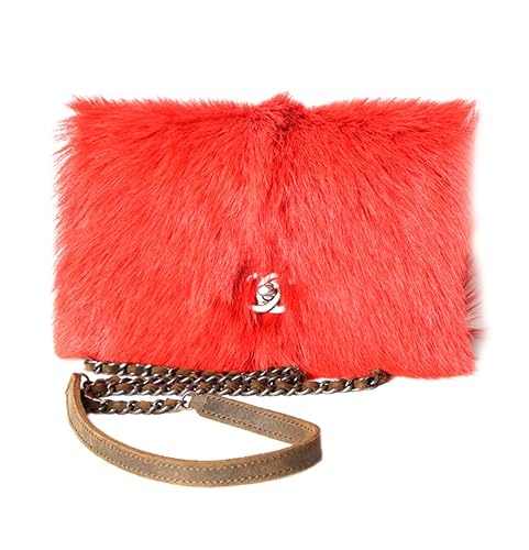 - Chanel Women's Genuine mink Fur Clutch Shoulder Bag with Chain in Red